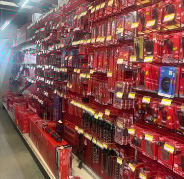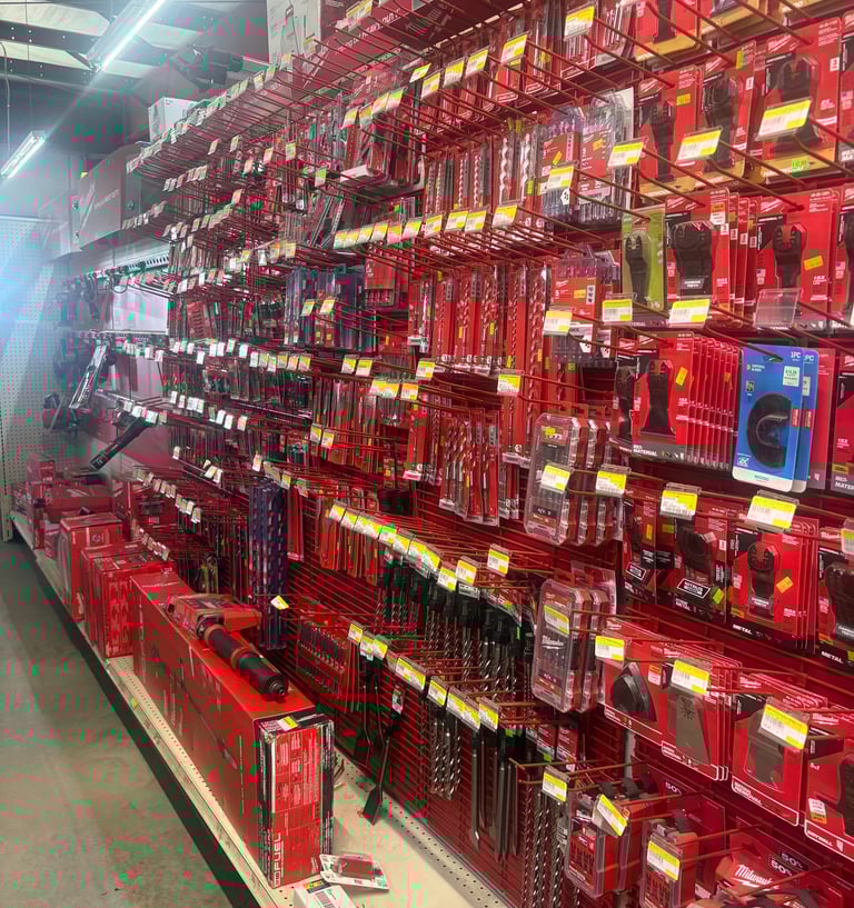 Hand tools, power tool accessories, and our "Wall of Fasteners"—nuts, bolts, and screws sold by the piece or the box.